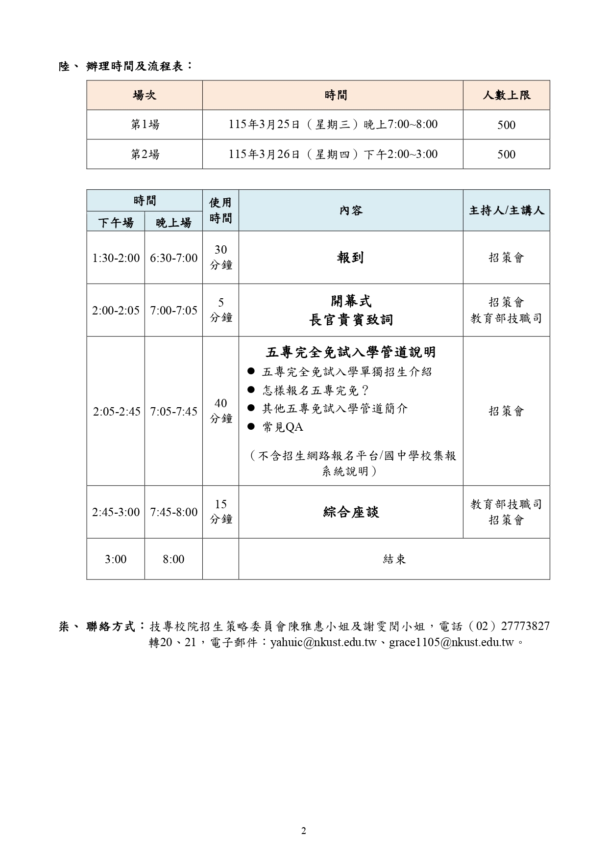 115學年度五專完全免試入學說明會(敬邀國中學生、家長及國中、五專教師參加)