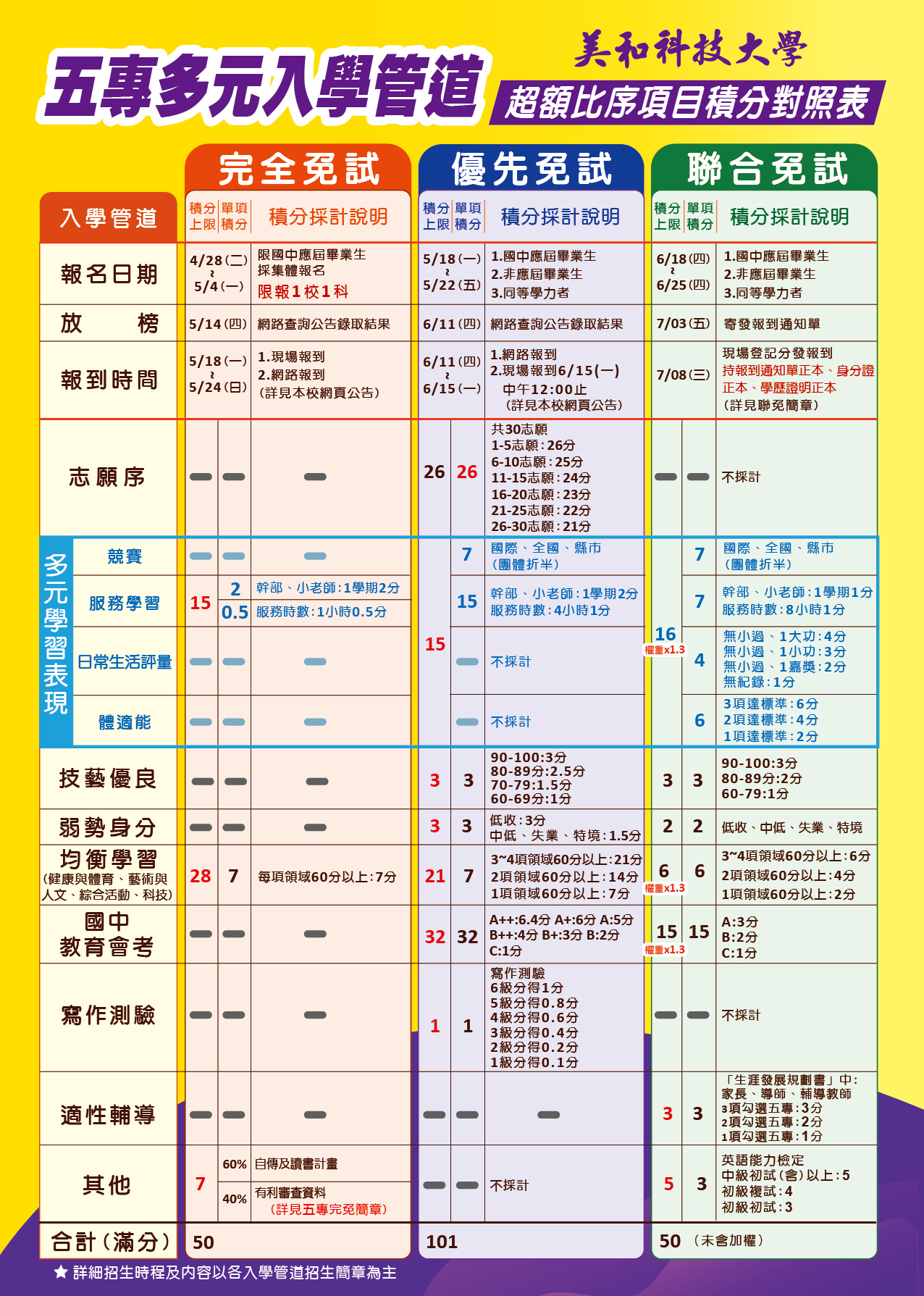 | 招生科(組)別 | 完免 | 優免 | 聯免 | 續招 |