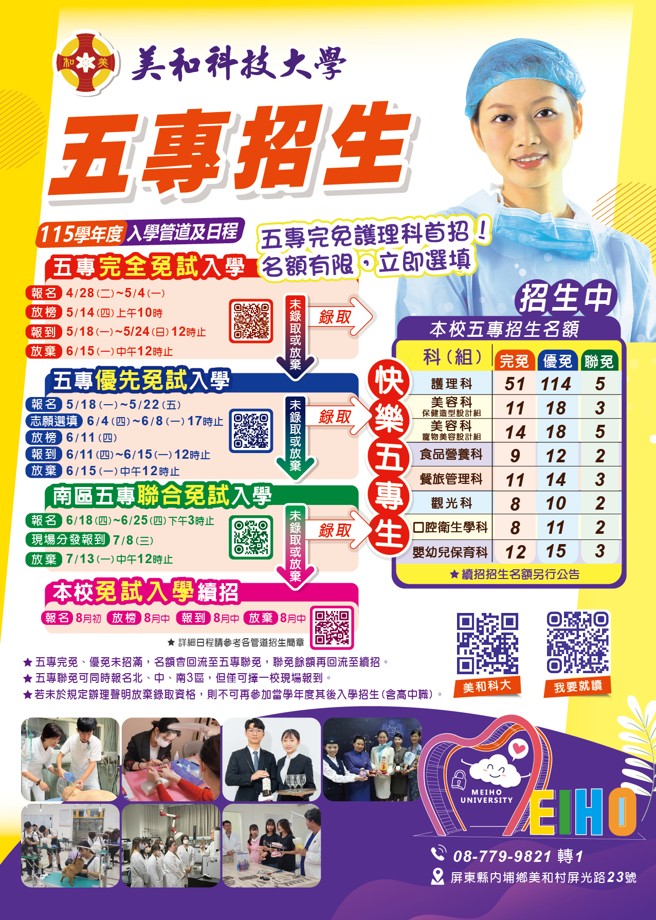 | 護理科 | 51 | 114 | 5 | 8月公告 |