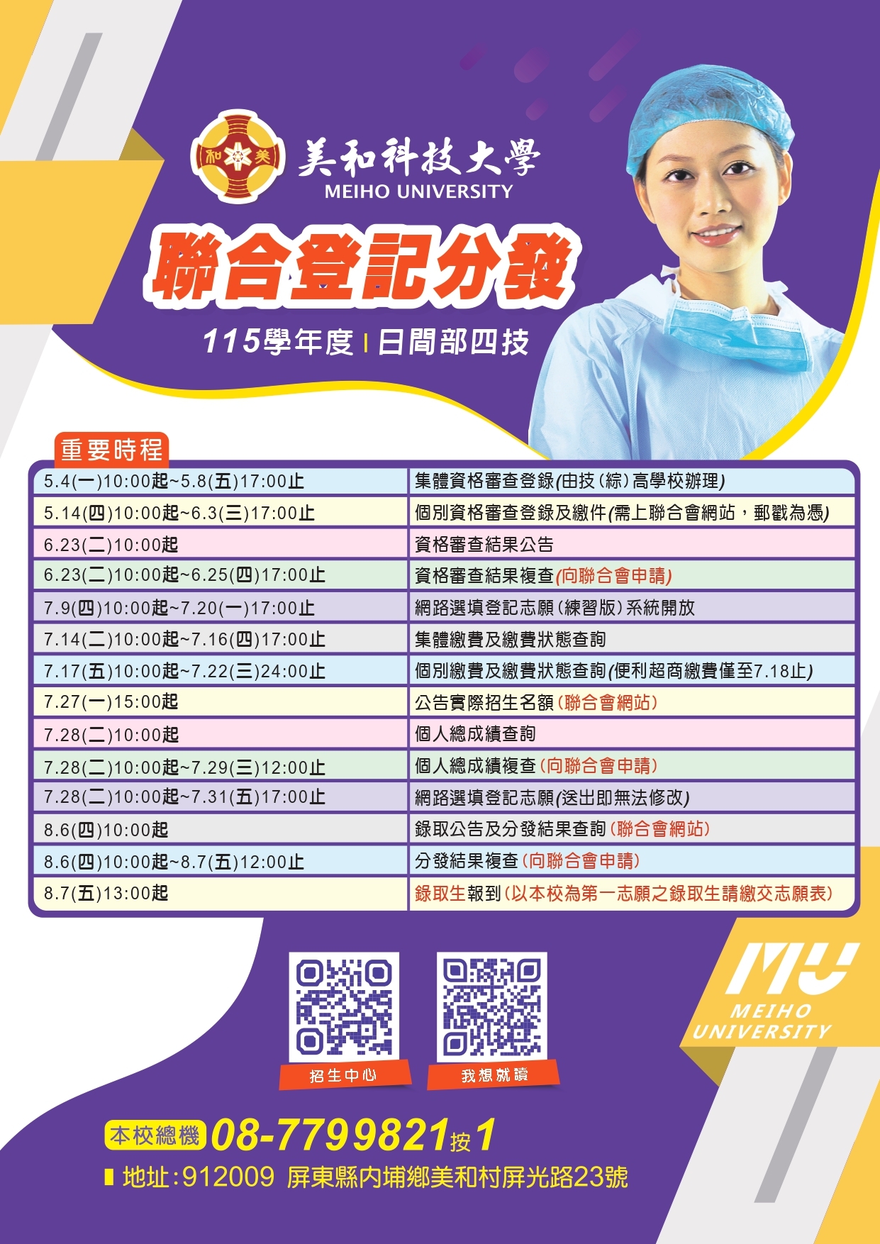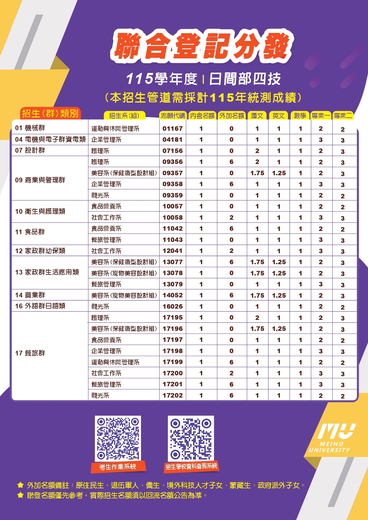 115 學年度科技校院日間部四年制聯合登記分發入學(連結至技專校院招生委員會聯合會)